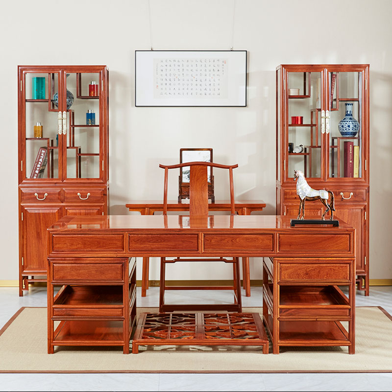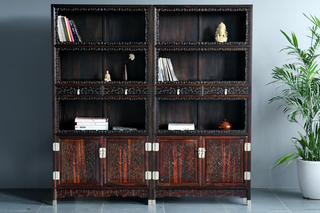 Full Height Bookshelf in Solid Rose Wood with Intricate Carving